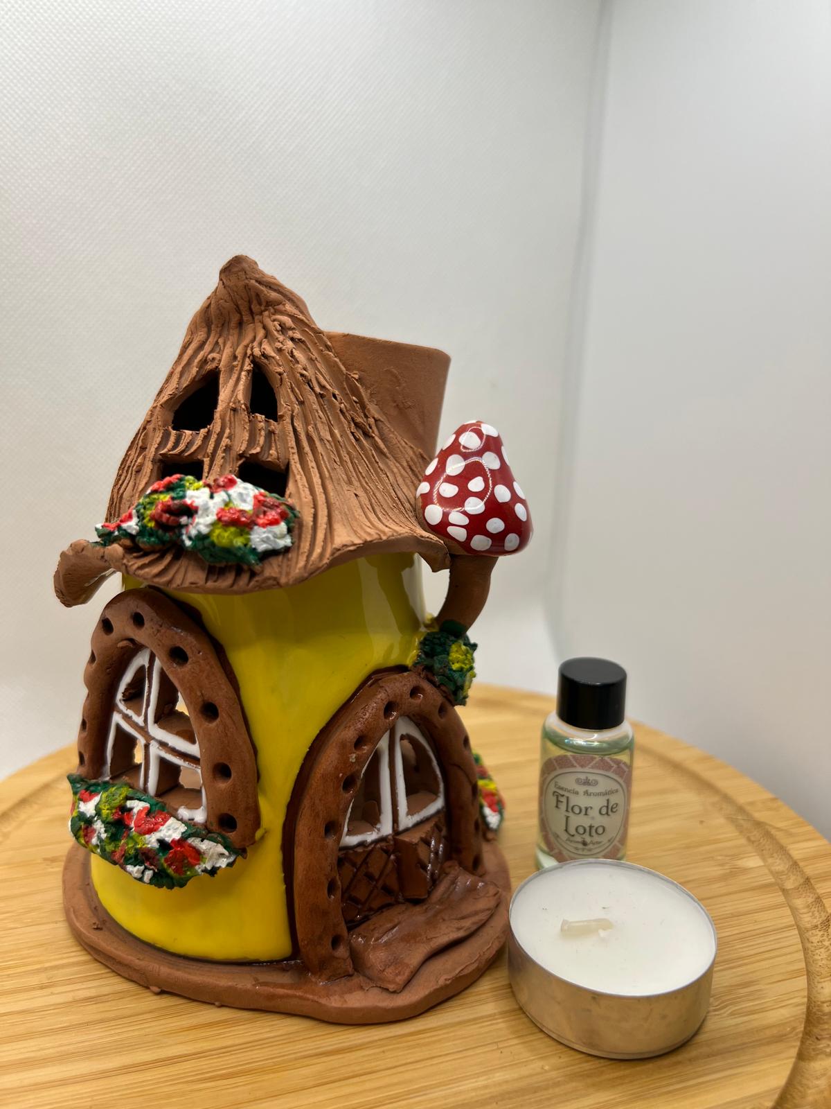 Casita-quemador El sol es un quemador de barro,completamente hecho a mano,para perfumar y decorar tu hogar.
