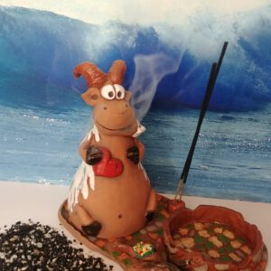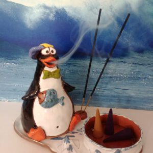 Sirve como objeto 3 en 1: para quemar cono incienso, incienso de barritas y, ademas, contiene un cenicero.Completamente hecho a mano.