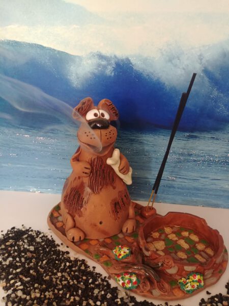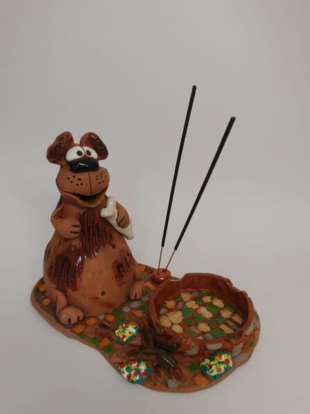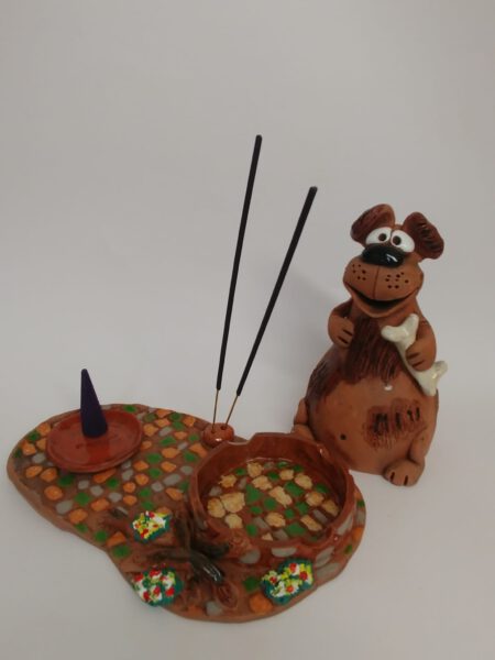 Sirve como objeto 3 en 1: para quemar cono incienso, incienso de barritas y, ademas, contiene un cenicero.Completamente hecho a mano.