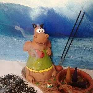 Sirve como objeto 3 en 1: para quemar cono incienso, incienso de barritas y, ademas, contiene una cajita para poner cosas pequeñas.Completamente hecho a mano.
