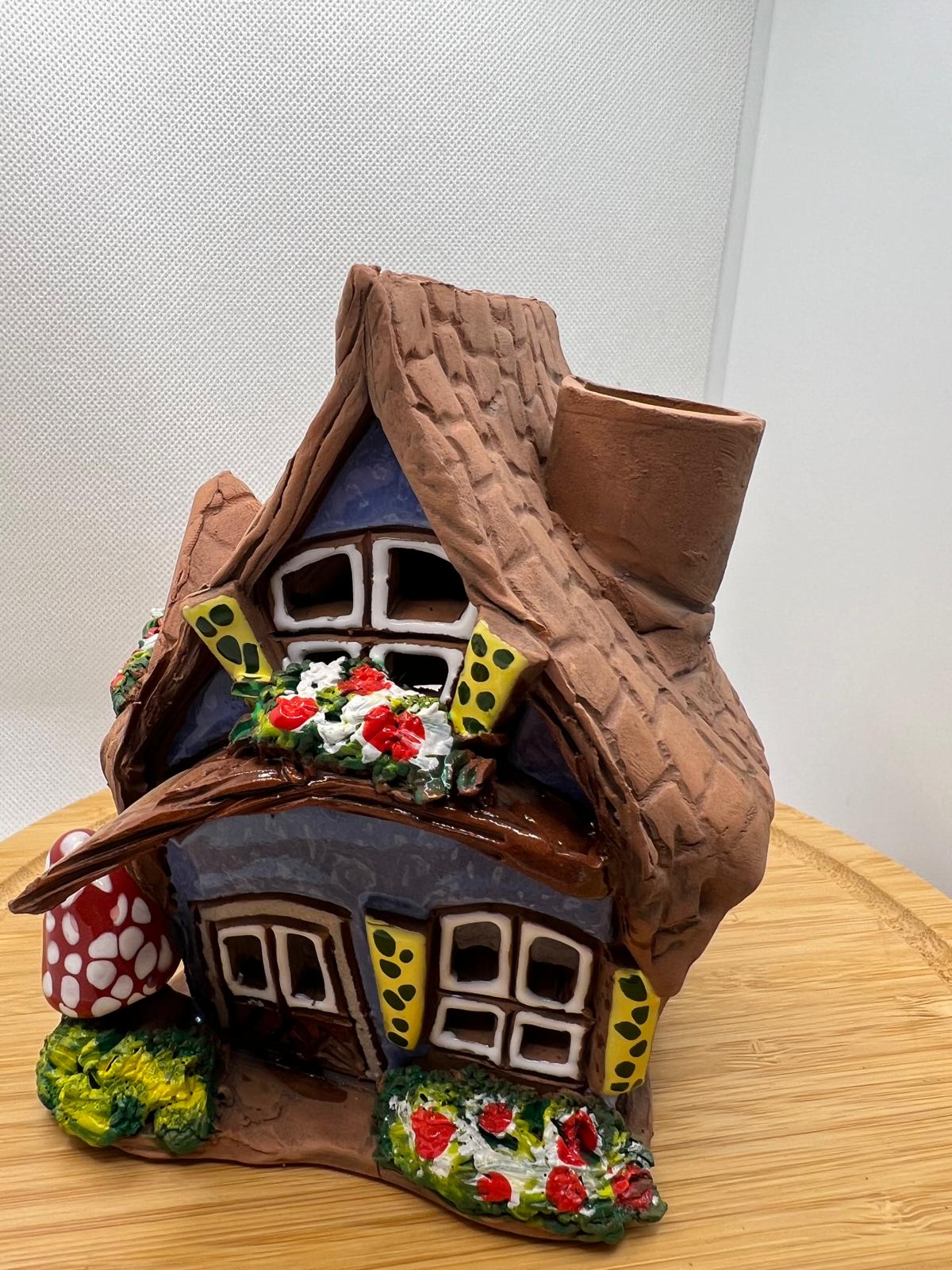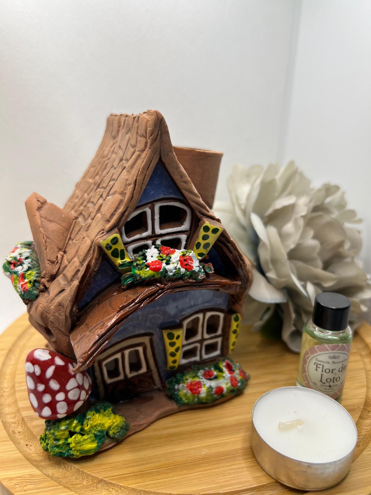 Casita-quemador es un quemador de doble uso y es de cerámica para perfumar y decorar el hogar.