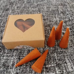 Conos de incienso de alta calidad,elaborados artesanalmente mediante la combinación de resinas naturales. Se venden en las cajitas de 10 unidades. Cada cono tiene una duración aprox.de una hora. Aroma: frutos rojos.