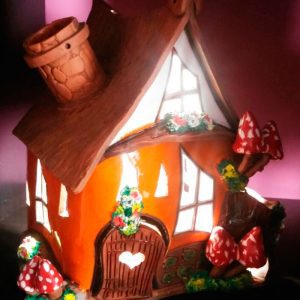 Lampara quemador Ventanas ventanitas es una lámpara de cerámica y quemador que ilumina y aporta un suave aroma a tu hogar.Se puede meter un cono incienso en la chimenea de la casa.