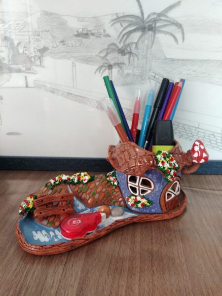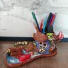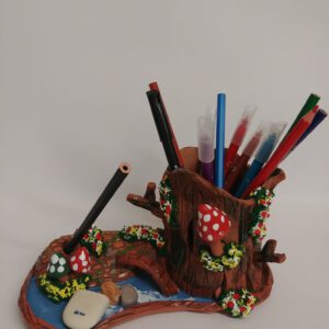 Colorido y divertido lapicero, de arcilla roja, es ideal para guardar lapices, boligrafos, rotuladores,tijeras y etc.Completamente hecho a mano.