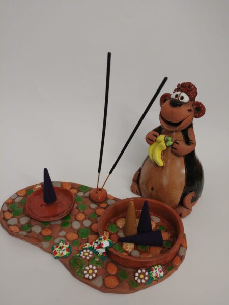 Sirve como objeto 3 en 1: para quemar cono incienso, incienso de barritas y, ademas, contiene una cajita para poner cosas pequeñas.Completamente hecho a mano.
